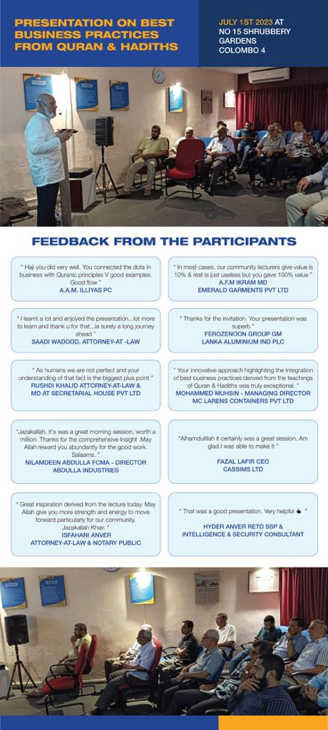 “ Testimonial for Best Business Practices from the Holy Quran & Sayings of the Prophet”